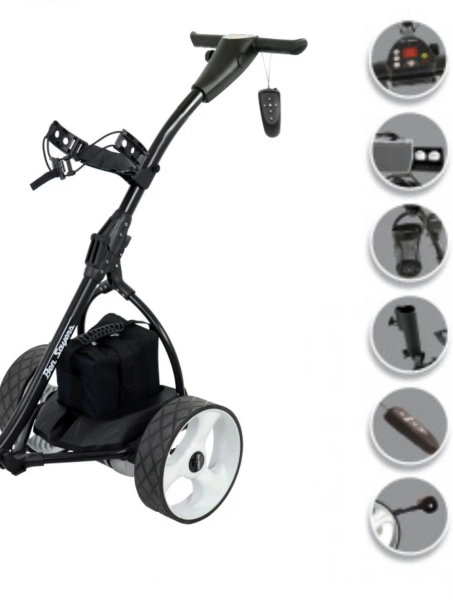 Features a 200W motor which will tackle even the steepest of slopes. This motor is powered by a 12V/36AH lead-acid battery, which allows for 36 holes to be played without charging.
